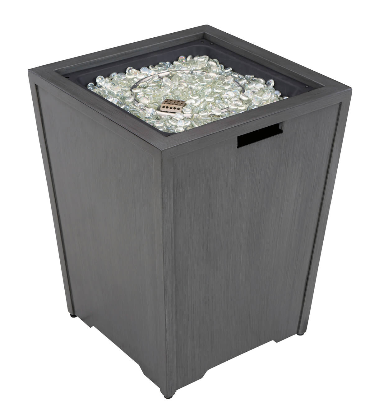 - Rectangular gas fire pit table with CSA-approved 35,000 BTU burner, glass beads, burner cover and all-weather polyester cover